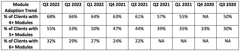 Last quarter, Burt Podbere told us that CrowdStrike would soon begin disclosing users with 7+ modules which offers more evidence of strong continued adoption. The company didn’t even disclose users with 6+ modules until fiscal Q3 2021 because the number wasn’t material enough to report.