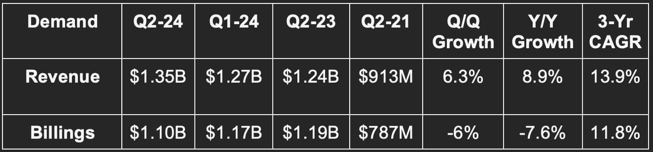 Budget scrutiny continues to hold back growth, but leadership praised its sales team’s ability to overcome that challenge by staying “close to customers.” Its domestic pipeline is healthy and points to a strong second half of the year while recent product events abroad are showing signs of building a robust international pipeline. Early renewals were ahead of estimates while contract duration lengthened to offer evidence of macro headwinds easing. This, according to leadership, is thanks to the mission critical nature of its platform, its vendor consolidation capabilities and the aforementioned strong sales team execution.