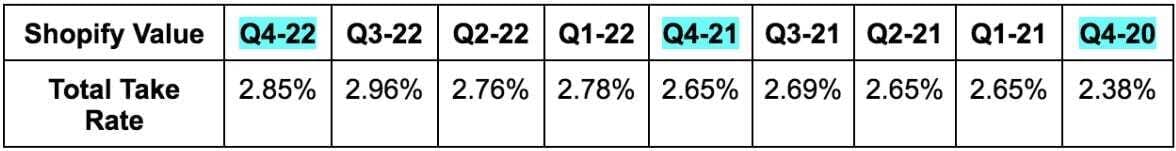 Shopify beat revenue estimates by 4.8%. This includes 200 basis points (bps) of foreign exchange headwinds.