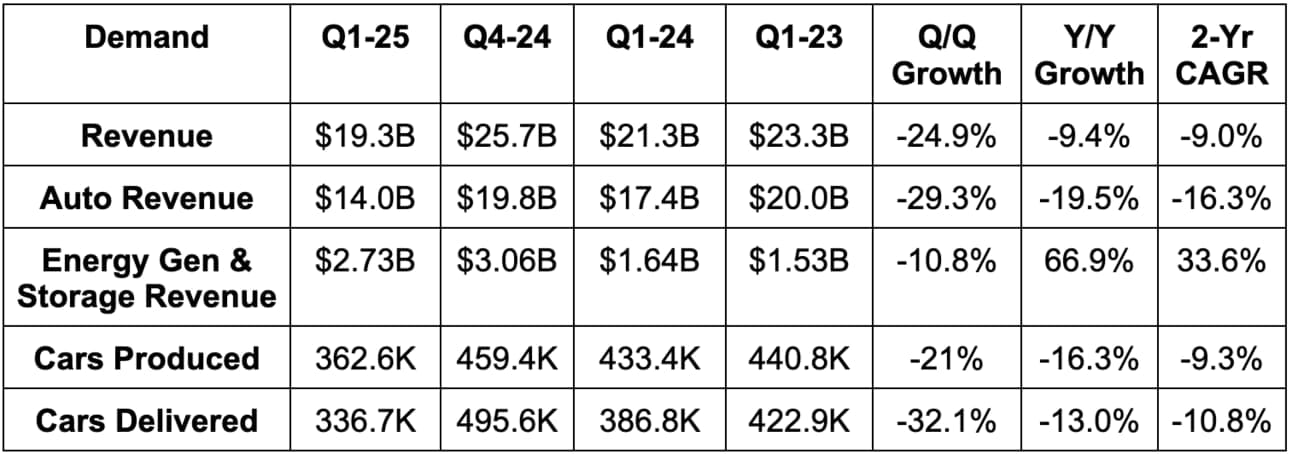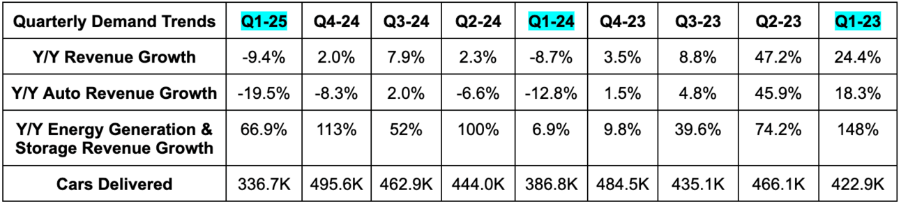 Revenue tailwinds for the quarter included regulatory credits and its energy generation and storage business. Headwinds included $300M in foreign exchange impacts, lower average selling prices and lower deliveries – partially due to its Model Y production overhaul (more later).