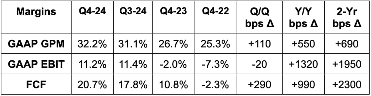 - Beat 31.8% GAAP GPM estimates & identical guidance by 40 bps each.
