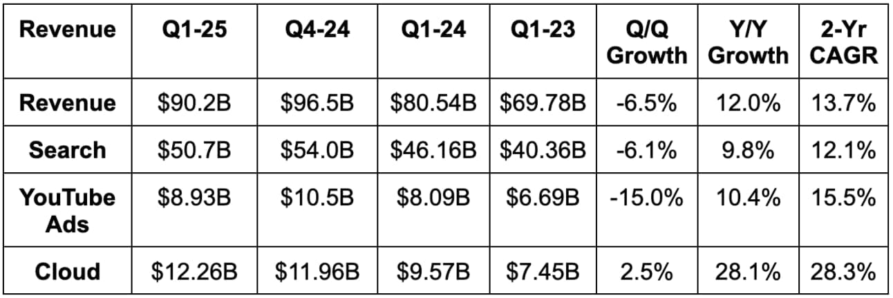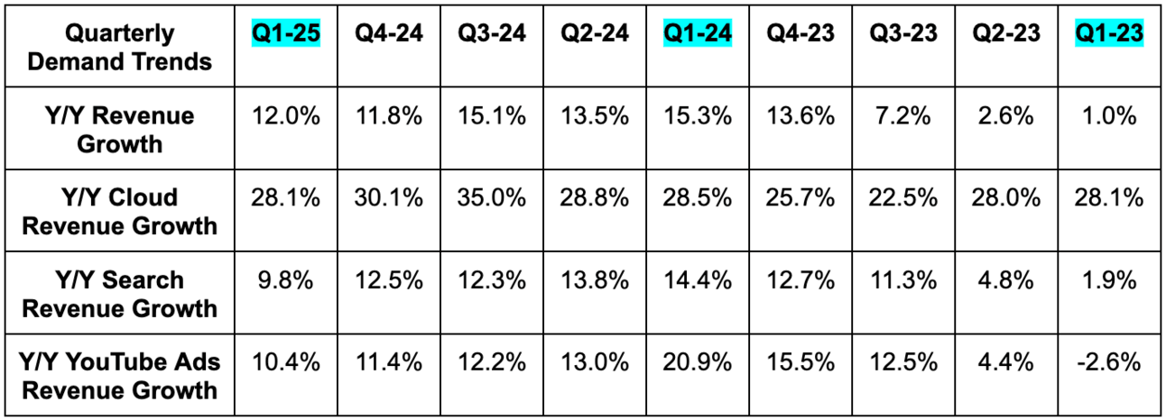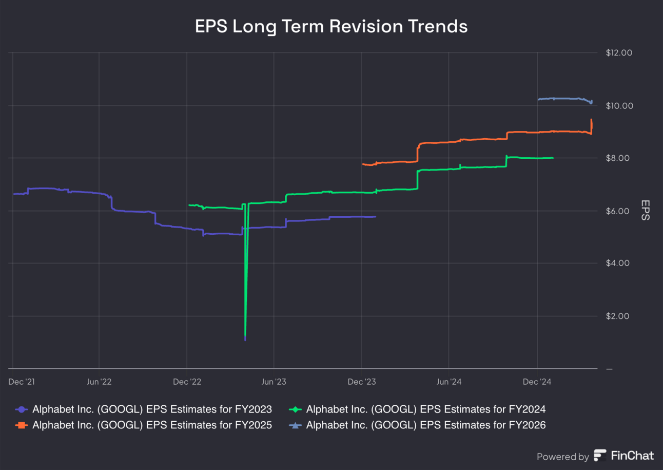 Alphabet reiterated its $75B CapEx guidance for the year. It continued to guide to accelerating depreciation expenses due to all of this CapEx growth. EPS is expected to grow by 16% this year and by 9% next year. EBIT is expected to compound at a 13% clip for the next two years.