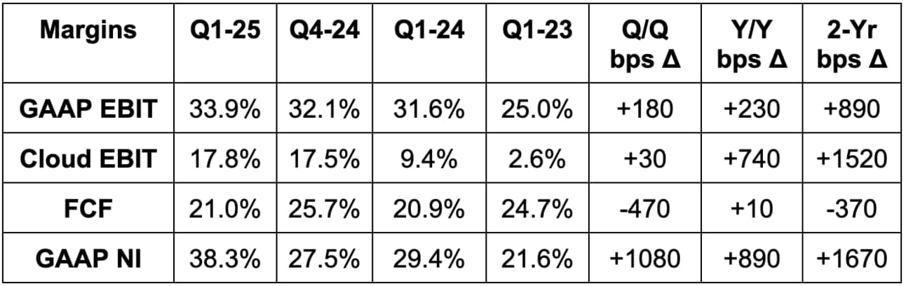 - 1.9% Y/Y share dilution. Announced a new $70B buyback program (3.5% of the market cap).