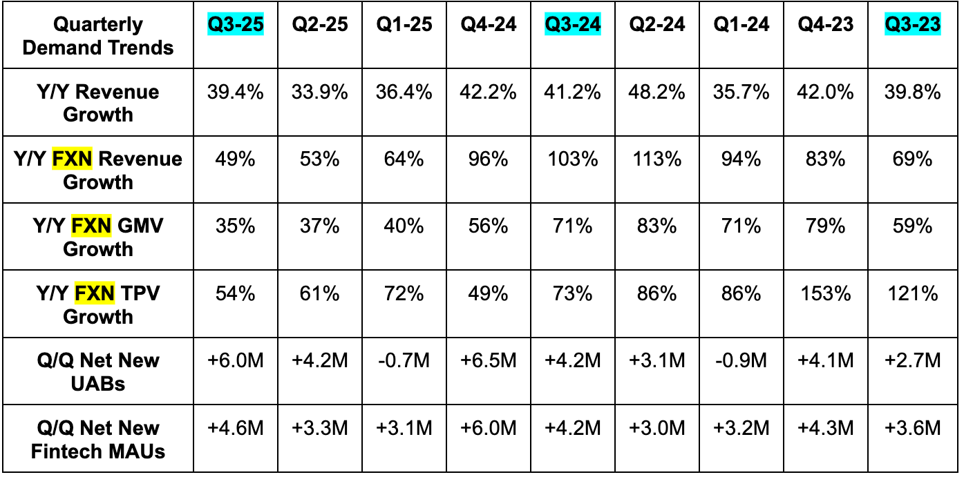 - 34% FXN Brazil GMV growth beat 30% growth estimates.