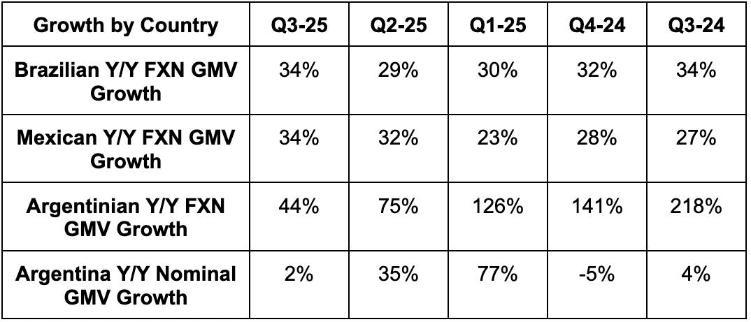 - 44% FXN Argentina GMV growth missed 65% growth estimates.