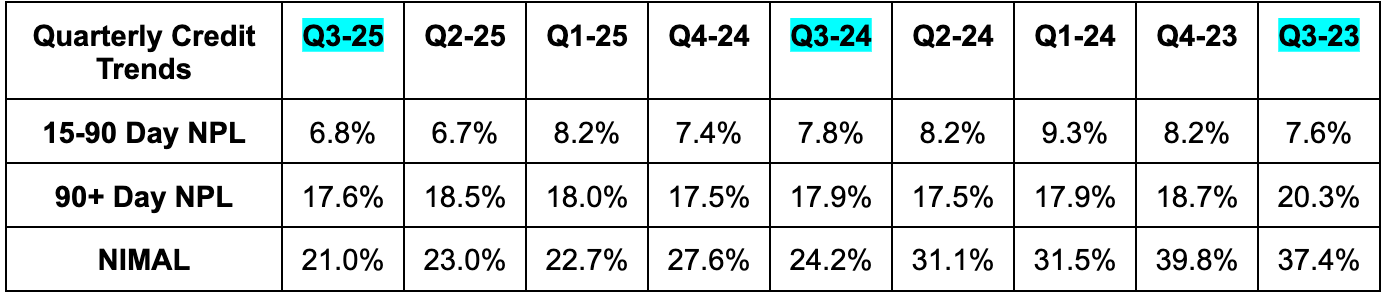 - Note that continued mix-shift from personal loans to credit cards weighs on NIMAL. Accelerating originations also weighs on NIMAL in the near term.