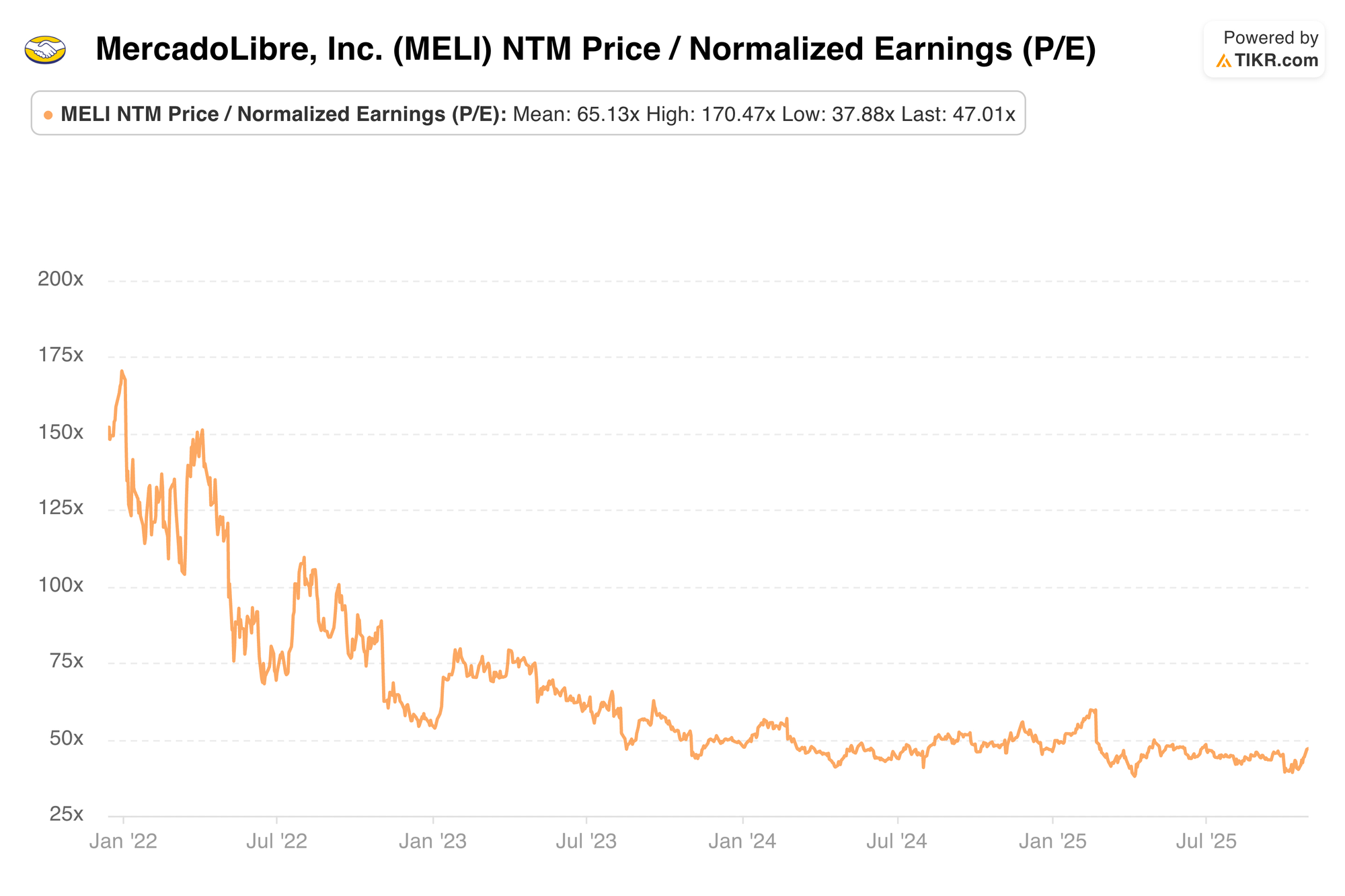 MELI trades for 47x forward EPS. EPS is expected to grow by 15% Y/Y this year. That will likely fall materially following this report. EPS is then expected to compound at a 43% clip over the following two years.