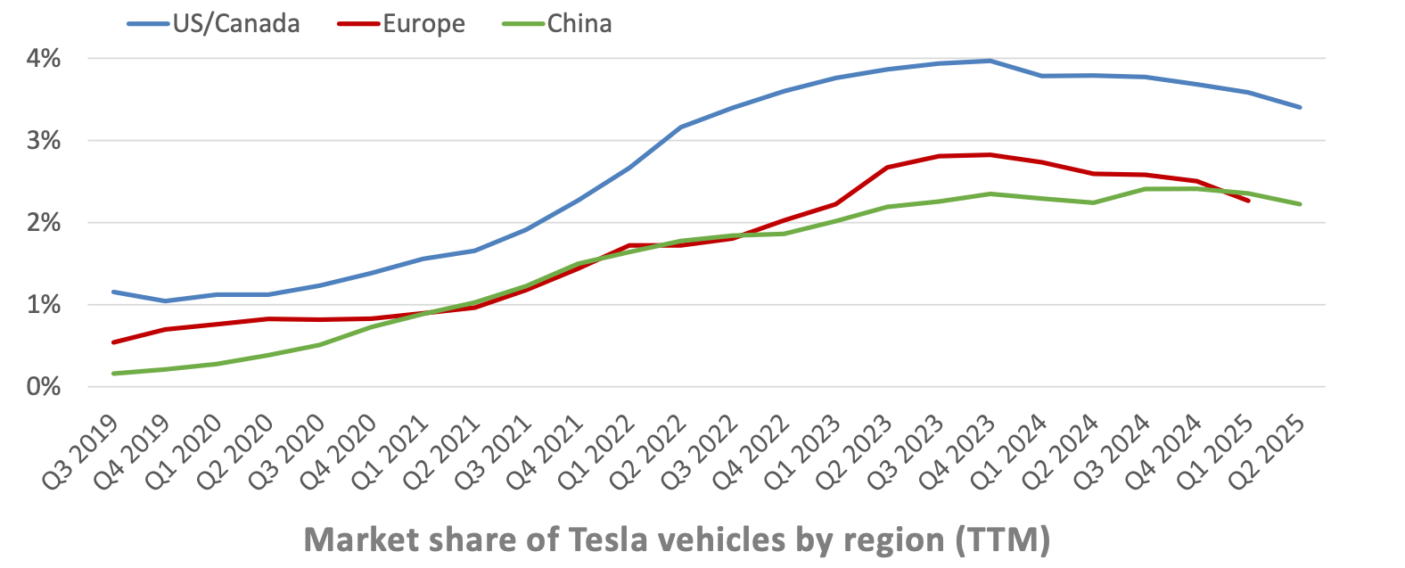 Optimus and robotaxi could easily both still be years away from carrying this financial engine. The auto business needs to perform better, and there are some reasons to believe that could happen. Test drives rose 20% Q/Q in North America, which is very encouraging. Potential FSD launches internationally could help, and so could its affordable 2026 model as well as the refreshed Model Y. We shall see if all of that can make market share look better in the coming quarters. That’s the metric that isolates Tesla’s relative performance vs. the field and eliminates macro-related noise. Focus on market share.
