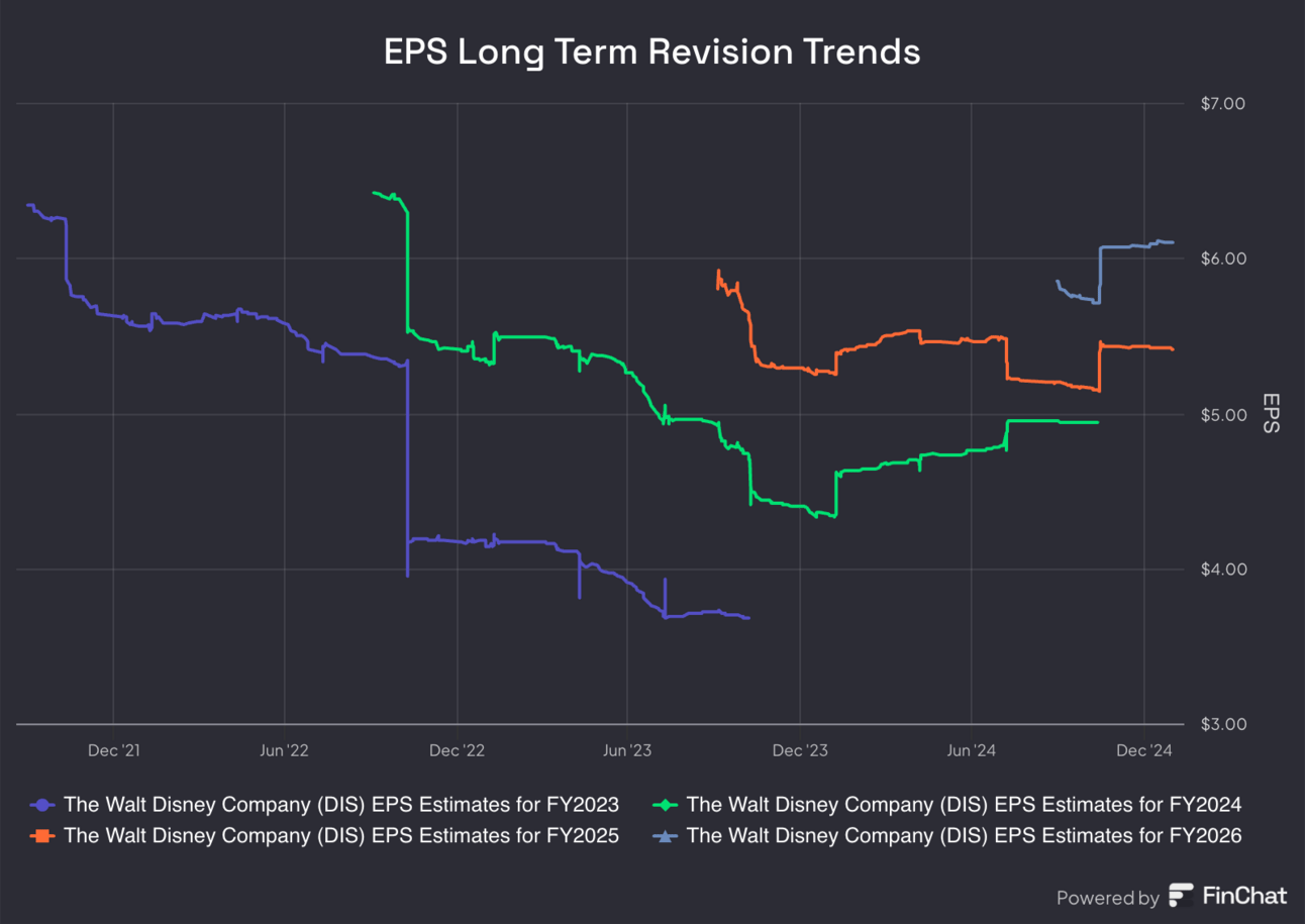 Streaming continues to be a “success story” in the eyes of Disney leadership. Most of that progress can be seen in outperforming Y/Y EBIT growth, while leadership also hinted at current streaming guidance being conservative.