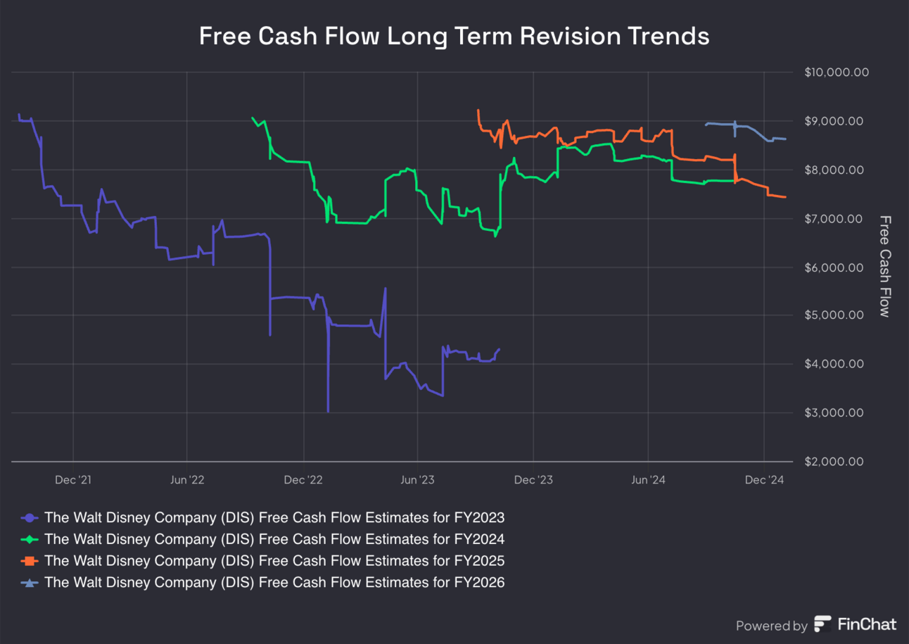 Disney trades for 20x forward EPS and 28x forward FCF. EPS is expected to grow by 10% this year and by 12% next year. FCF is expected to decline by 19% following 75% Y/Y growth and then grow by 25% the following year. EPS estimates should be safe. FCF estimates may fall a tad more.