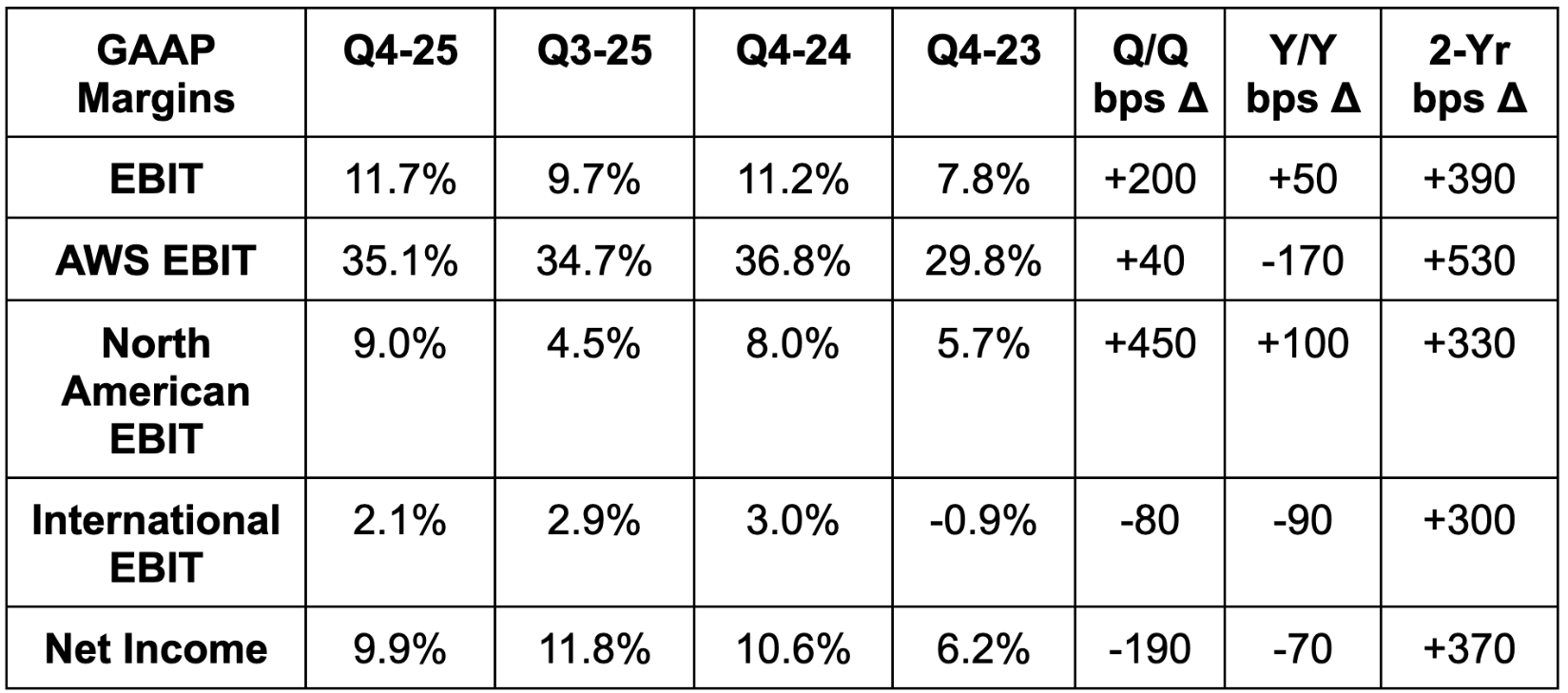 - Beat AWS revenue estimates by 2%.
