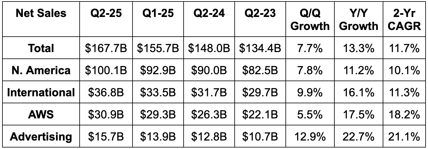 Decent quarter. I’d love to see Amazon be more aggressive at figuring out how to get AWS supply online faster. While AWS is a fantastic product with a great runway and strong competitive differentiation, it should be growing faster right now and that’s a tad frustrating. But… emphasis is on “a tad.” They have everything they need to accelerate this business going forward and that is what I expect.