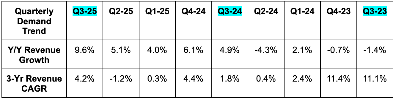 - Its 11.7% 2-yr revenue compounded annual growth rate (CAGR) compares to 8.7% Q/Q & 12.2% 2 Qs ago.