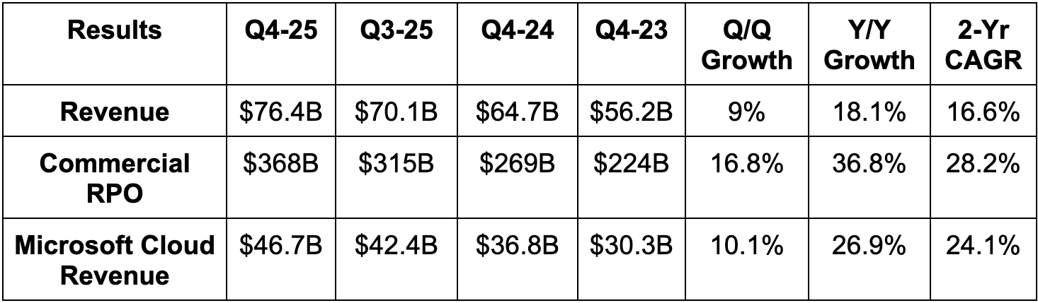 Excellent quarter. Azure was remarkably strong and the full-year guidance was also quite impressive. Microsoft continues to effectively bundle more and more solutions in its massive enterprise software suite and enjoy immediate adoption whenever it does. The hefty CapEx is entirely warranted based on near-term demand signals and every piece of this business looks to be full speed ahead. More fantastic execution from this elite team and company. Enough said.