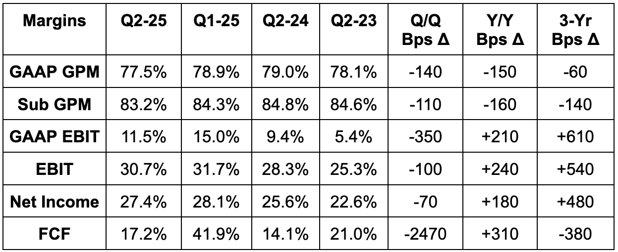 - Slightly missed 83.4% subscription GPM estimate by 20 basis points (bps; 1 basis point = 0.01%).