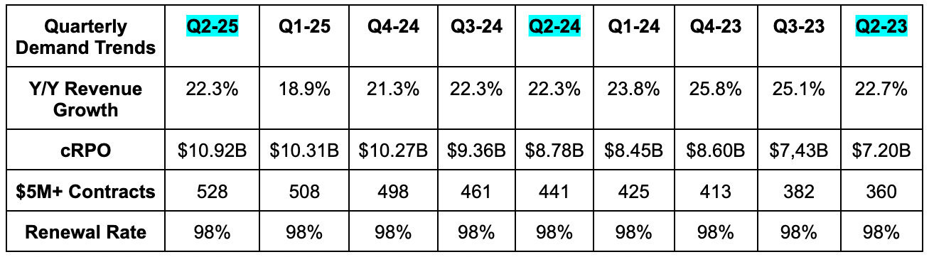 - The average contract size for their $5M+ customers rose from $13.5M to $14.5M Y/Y.