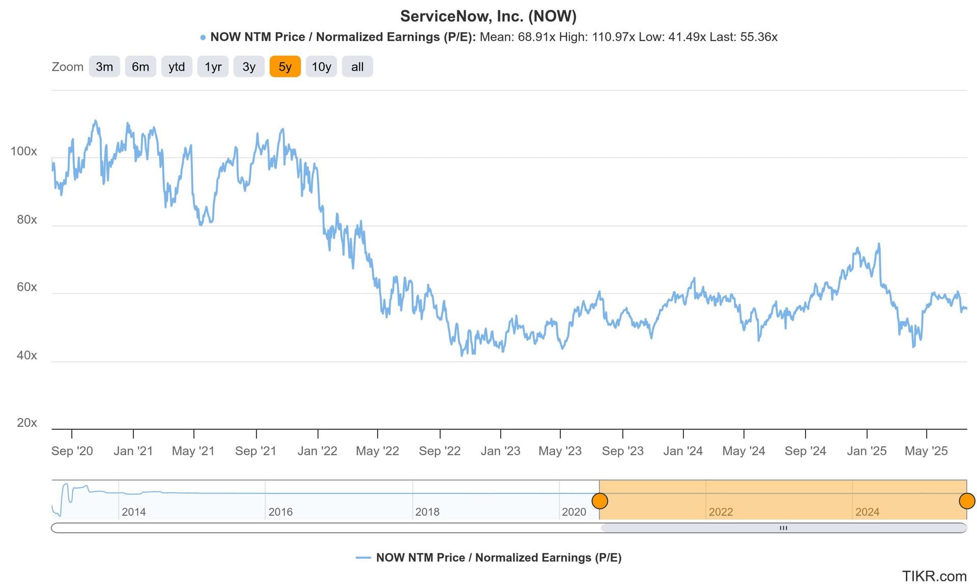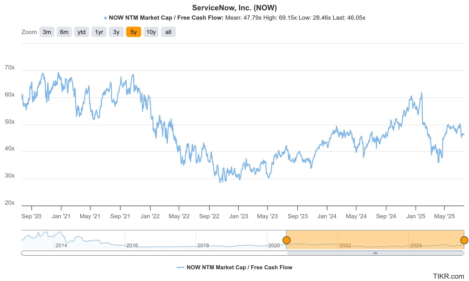 NOW trades for 46x forward FCF. FCF is expected to compound at a 20% clip for the next two years. It also trades for 56x forward EPS. EPS is expected to compound at a 20% clip for the next two years.