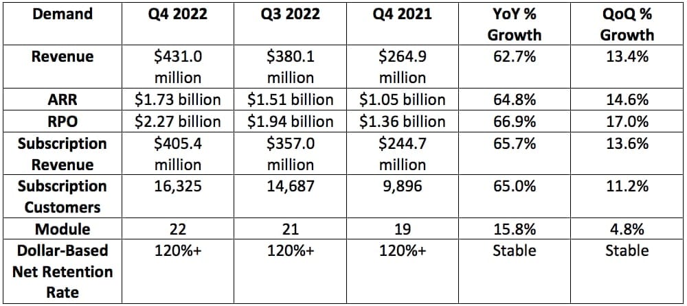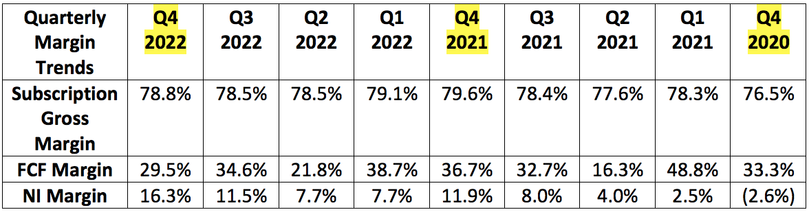 CrowdStrike’s weighted diluted average shares outstanding was 238 million for Q4 2022 (calendar 2021). That will rise to 243 million next year for modest 2.1% shareholder dilution.
