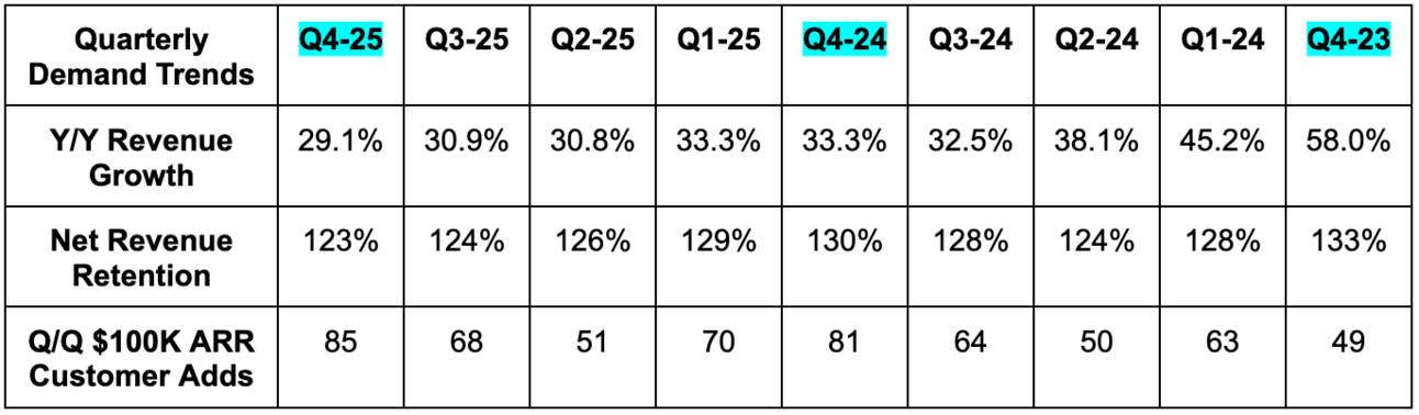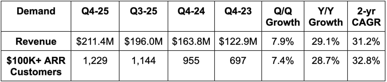 - Beat revenue estimates by 6.9%. Its 19.8% 2-year revenue CAGR vs. 17.1% Q/Q & 13.4% 2 Qs ago.