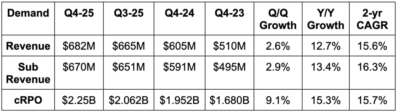 - Beat current remaining performance obligation (cRPO) guidance by 5.4%.