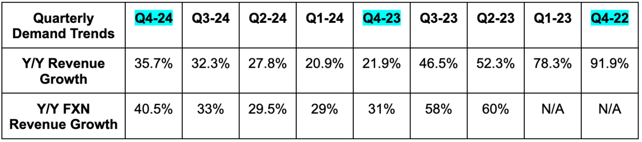 - 31.2% 2-yr revenue CAGR vs. 31.7% Q/Q & 34.2% 2 Qs ago.