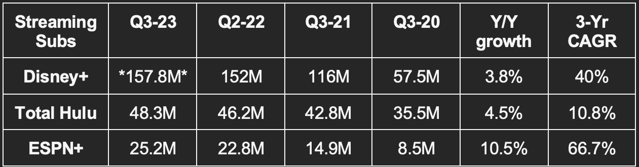 It’s important to note that Disney fully expects streaming subscriber growth to continue for the long haul. The team has simply placed added emphasis on guaranteeing the unit economics as growth continues. It sees ramping core subscriber growth as we wrap up fiscal 2023 and head into 2024. The confidence stems from easier comps, a strong content slate and partners like Sony adding to the library’s appeal.