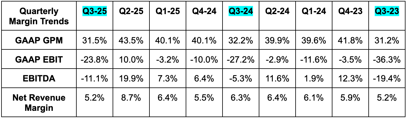 - Missed 37% GPM estimate by 6 points.