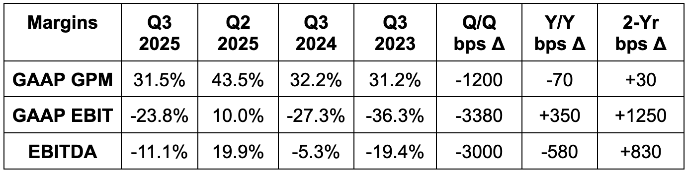 - No updates to annual GPM or FCF guides but I’m sure both were lowered internally based on the other misses.