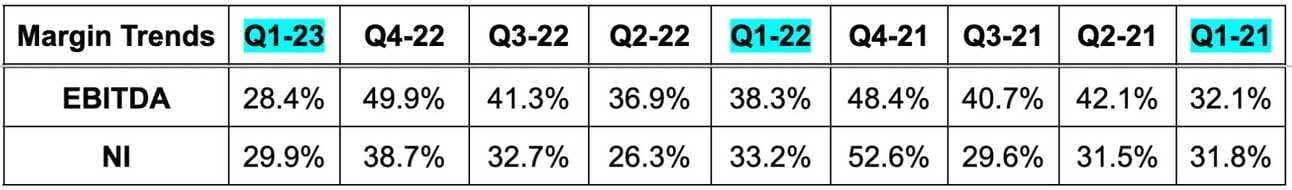 - Easy comps in Q1 2021 and Q1 2022 turned into tough comps this quarter. Revenue growth would have been closer to 23% ex-2022 political spend.