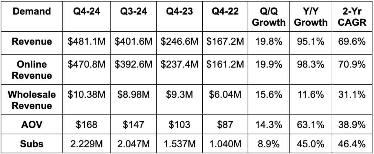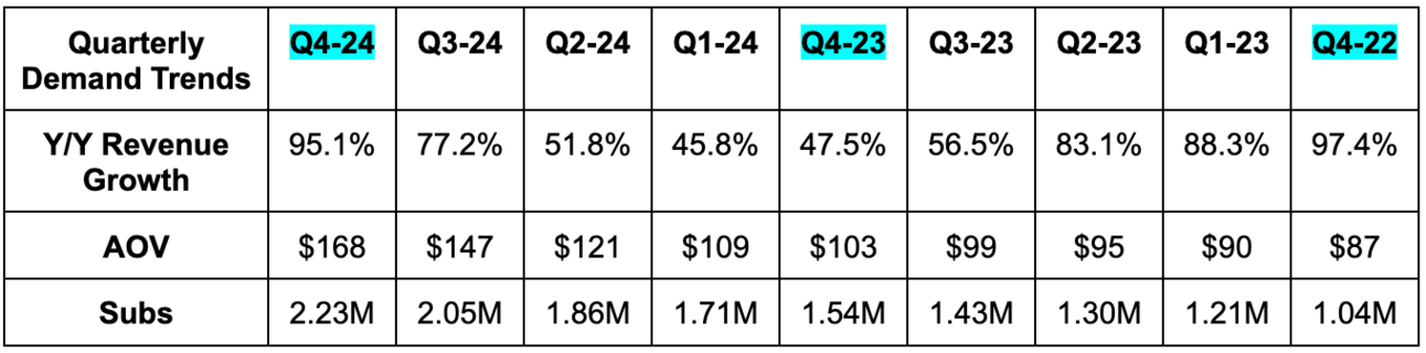 - Growth in 2024 excluding GLP1 (weight loss drugs) was still a lofty 43% Y/Y vs. 69% Y/Y for the whole company.