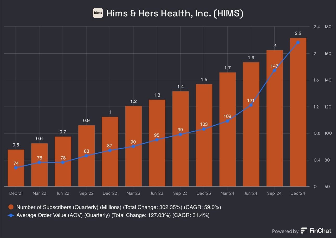 Despite being founded just 8 years ago, Hims is already nearing a $500 million quarterly revenue run rate, with great margins. It’s founder-led and competes with smaller vendors like Roman while increasingly competing with Amazon.
