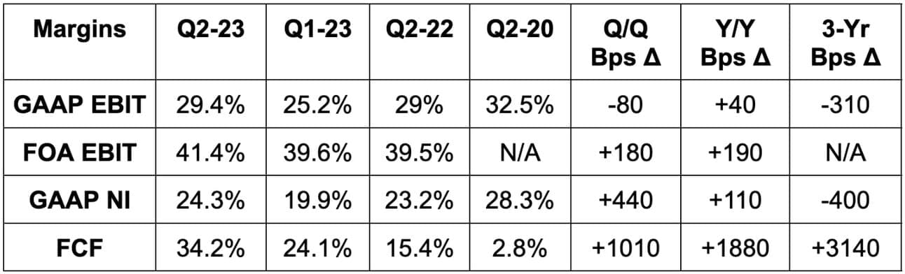 - FOA revenue beat estimates by 3.8%.