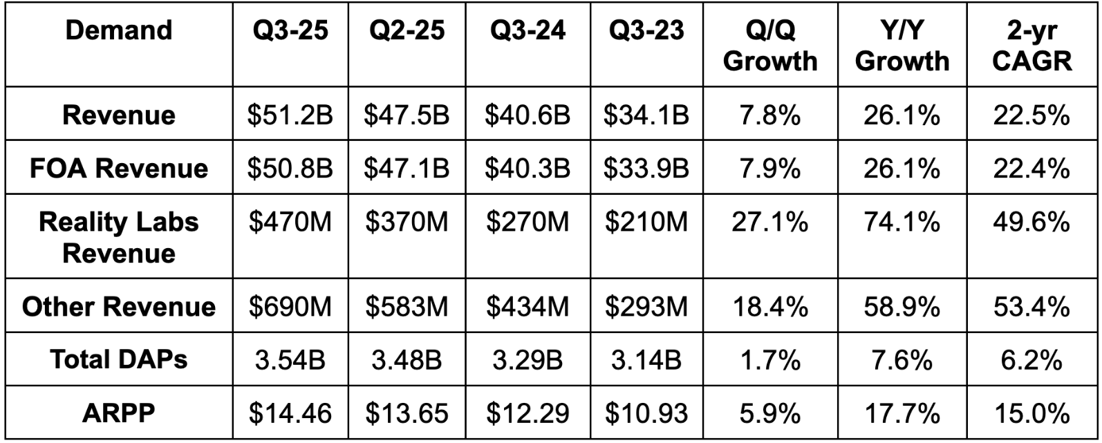 - Beat Family of Apps (FOA) revenue estimates by 3.5%.
