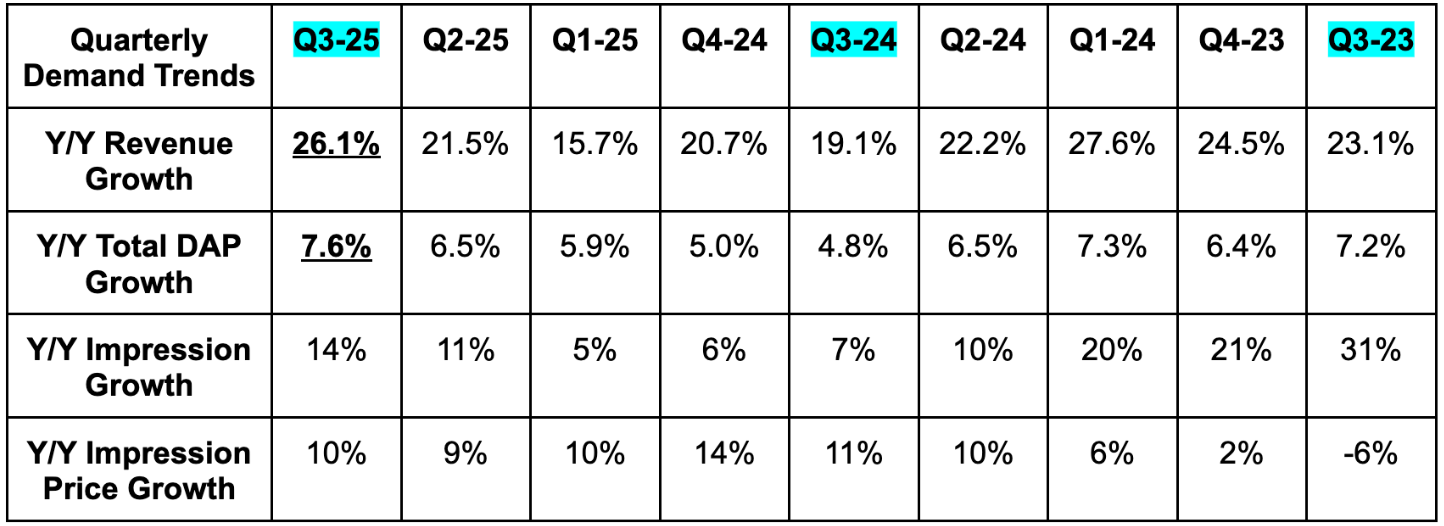 - Beat 11% Y/Y ad impression growth estimates with 14% Y/Y growth.