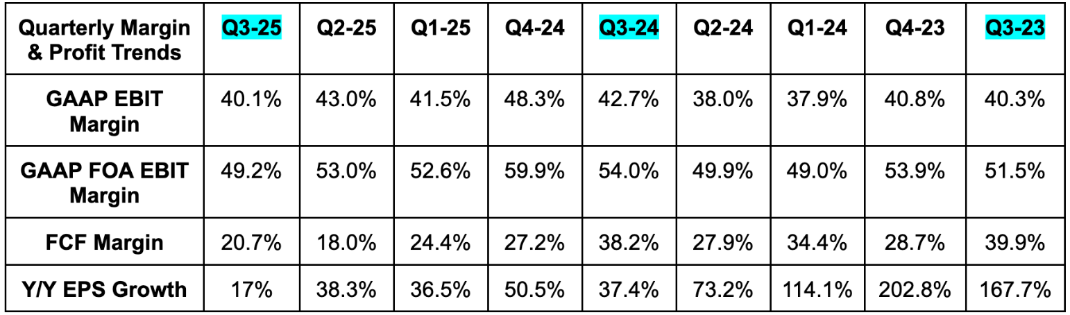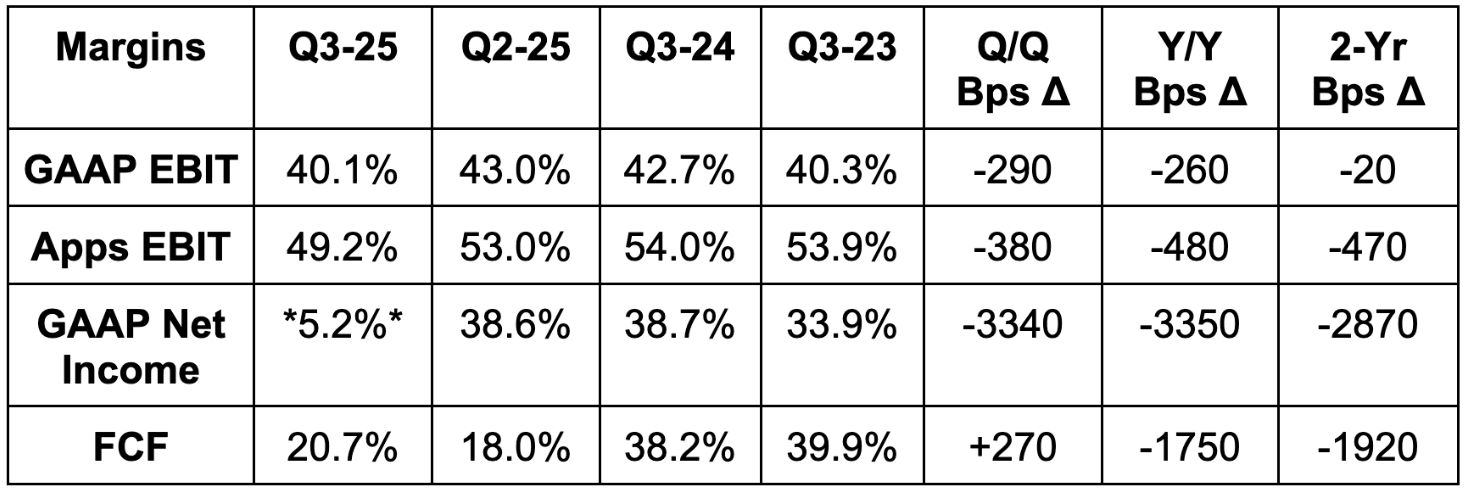 The Big Beautiful Bill (BBB) implementation led to Meta writing down the value of some deferred tax assets. This led to a $16B non-cash charge, which heavily impacted EPS and led to a massive and noisy “miss.” Excluding this charge, EPS would have been $7.25 vs. $6.71 expected for 17% Y/Y growth. EPS is irrelevant for this quarter. The EPS growth chart below excludes this item.