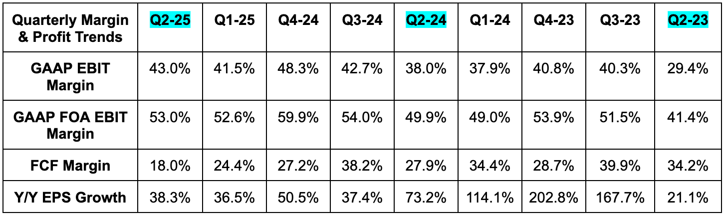 Q3 revenue guidance was 6% ahead of estimates. This includes a 1% foreign exchange (FX) tailwind. It did slightly raise its OpEx and CapEx guidance for 2025, which were both slightly above expectations. For Q4, they expect slower Y/Y revenue growth than the 21% Y/Y growth guided to for Q3. This was as expected (consensus growth estimates for Q4 are 13.5% Y/Y).