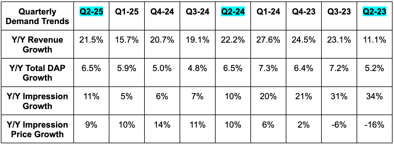 - 11% impression growth beat 7% estimates.