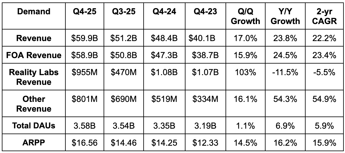 - Family of Apps (FOA) revenue beat estimates by 2.6%.