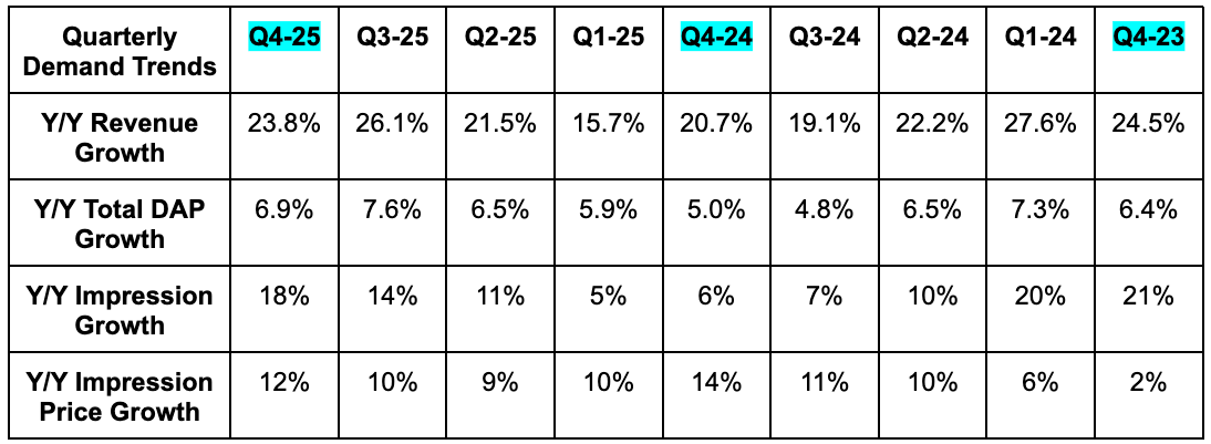 - Pricing growth was driven by better ad performance.