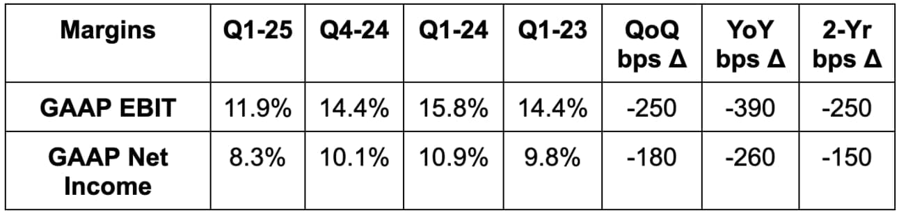 We got very little color on guidance, as expected. Organizational changes discussed below will lead to EPS troughing in Q2 2025, with positive growth resuming in Q3 and Q4. The Q2 weakness is related to restructuring and lapping lower performance-based compensation in the prior year period. Finally, it walked back the old team’s commitment to $4 billion in operating expense (OpEx) savings.