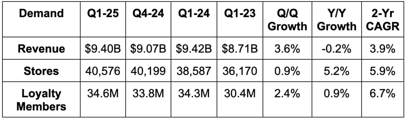 - Slightly missed store count estimates.