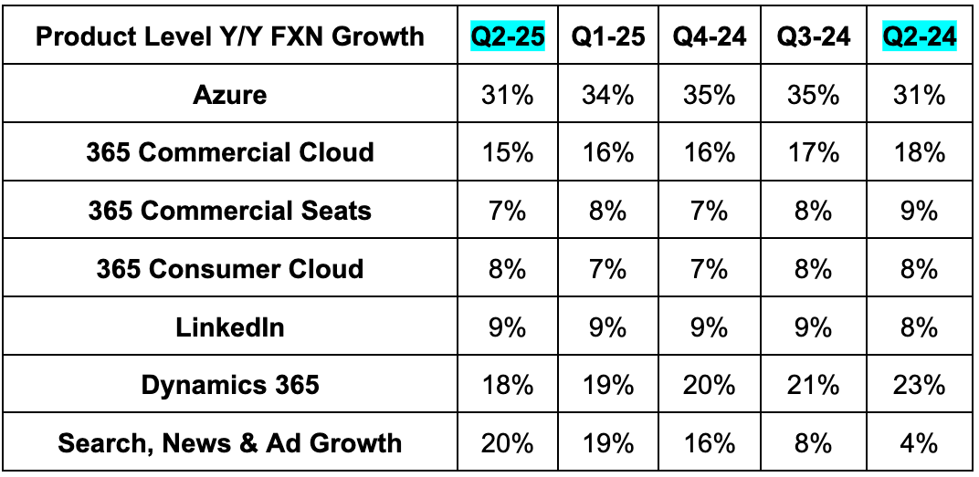 - Azure remains supply constrained, but an execution-related blunder held growth back a tad too.