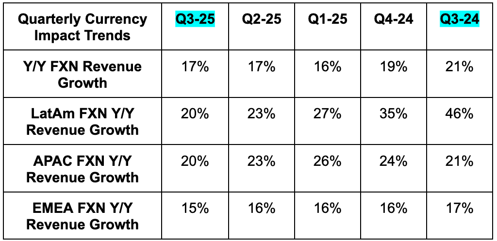 Netflix incurred a $619M charge in Brazil due to a “gross tax on outbound payments.” The nation’s supreme court unexpectedly ruled this tax included Netflix’s operations, reversing a previous decision by lower courts. $619M covers nearly 3 years of back charges, which is why the number will not be remotely as large in the future. The expense lowered EBIT margin margin by a full 500 basis points (bps; 1 basis point = 0.01%).