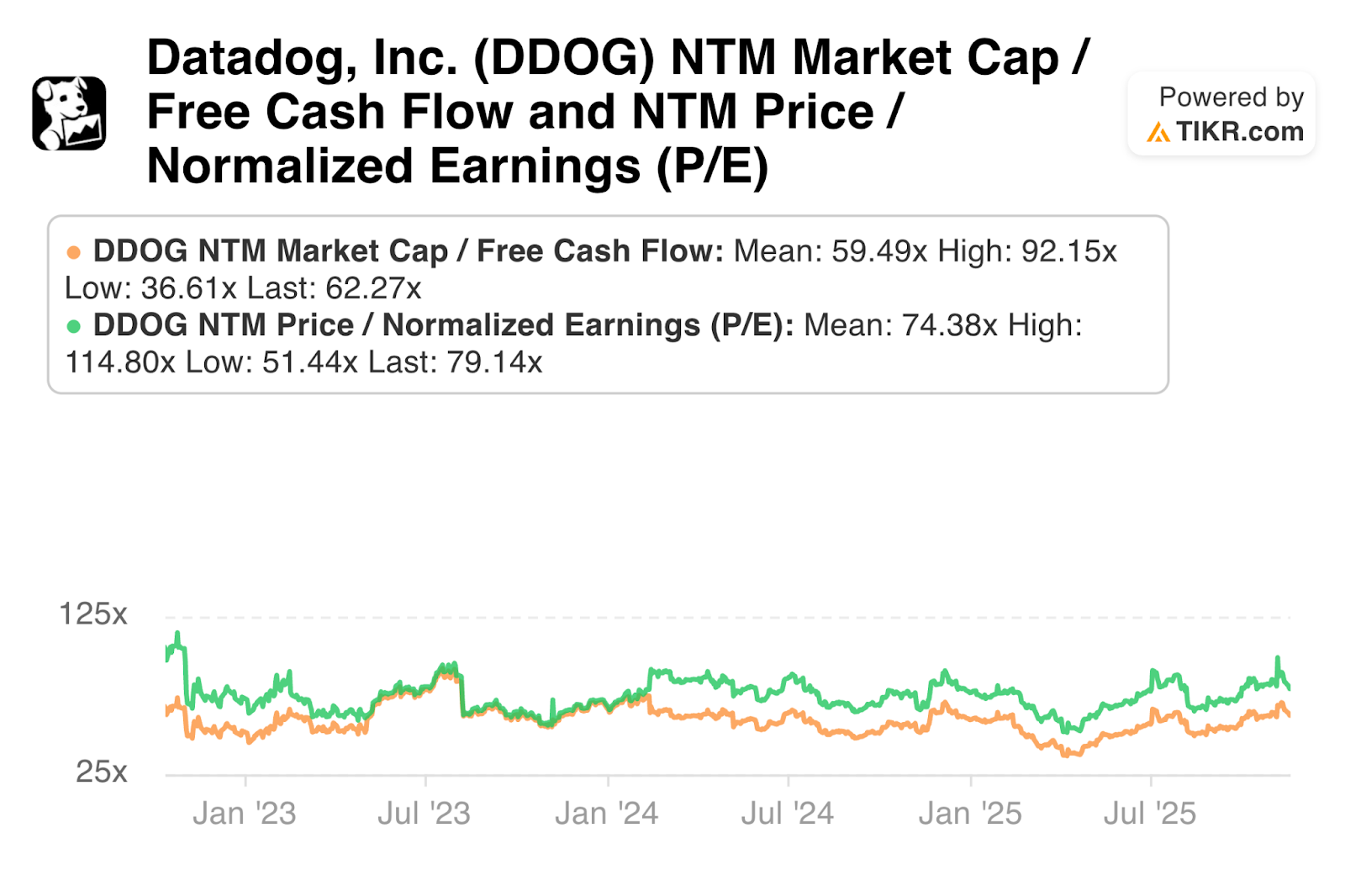 DDOG trades for 79x forward EPS and 62x forward FCF. EPS is expected to grow by 11% this year, 16% next year and 23% the year after. FCF is expected to grow by 14% this year, 24% next year and 29% the year after. They’re in the midst of an investment cycle right now.