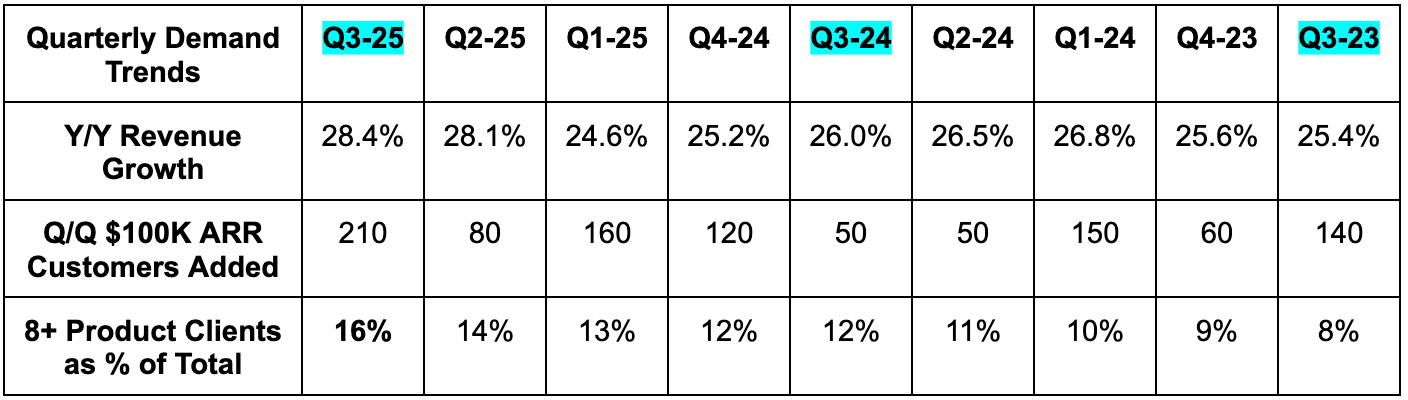 Great quarter. The company’s go-to-market fixes are clearly working while their product traction is fantastic in security and good in AI (despite being very early there still). It was great to see them renew the OpenAI contract amid all of that noise as clearly using Datadog is a better option than that disruptor building their own tools. It's also great to see that occur while GPM still expanded on a Y/Y and Q/Q basis. That’s impressive and goes to show how effective they’ve been with trimming cloud and engineering costs. I thought the sharp Q/Q acceleration in security growth and the large roster of AI clients with $100K+ in ARR were both impressive items from a long list of highlights.