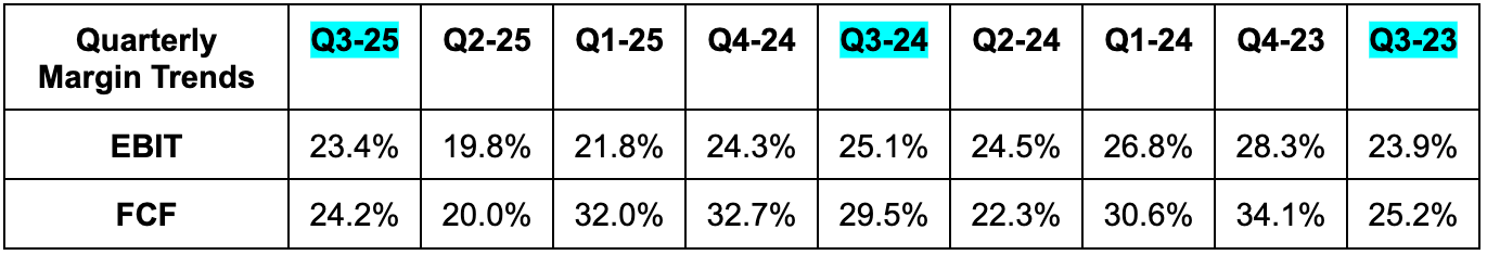 - Raised Q4 EBIT guidance by 21%, which beat estimates by 19%.