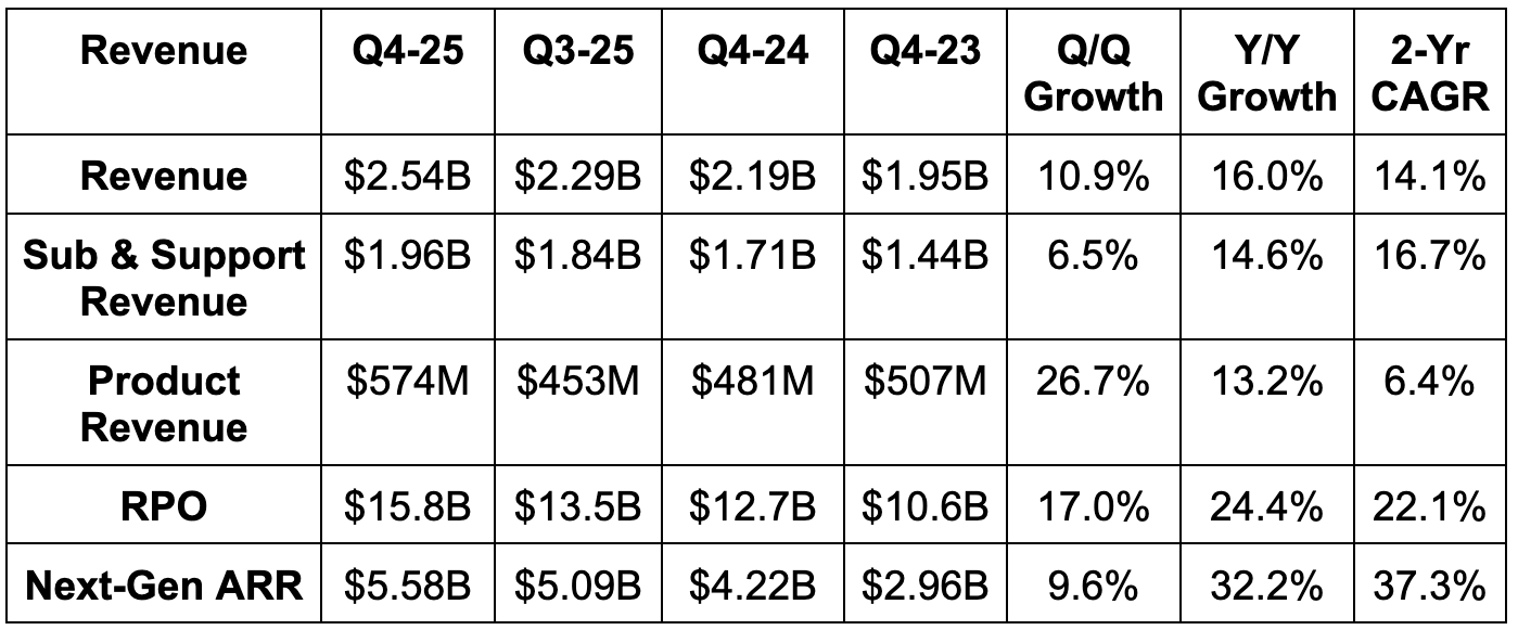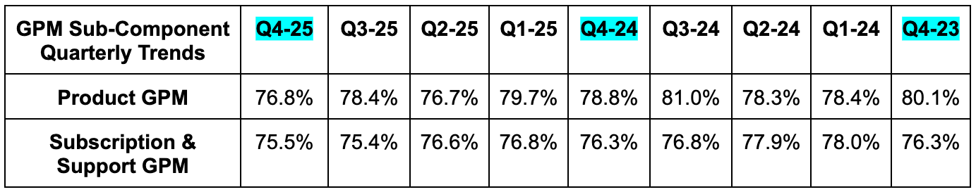 - They’re taking market share in hardware firewalls, but that’s not a high growth segment and will not be in the future. Guidance continues to assume hardware growth is roughly 5% Y/Y for FY 2026.
