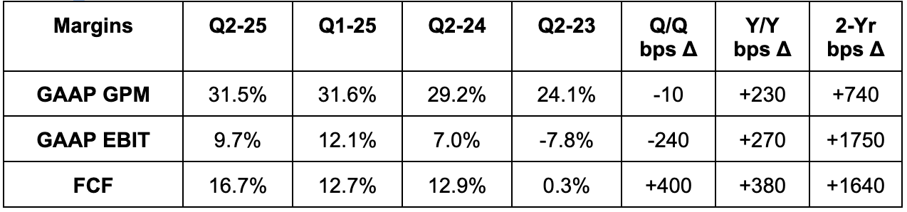 I get excited when this team identifies new growth opportunities, and support their decision to take advantage of those high-return prospects. It’s not about maximizing profit for a three-month period (even though Wall Street routinely makes us feel like that’s all that matters). It’s about optimizing long-term value creation, and doing so for Q3 requires getting aggressive with OpEx and accepting modestly lower near-term margins.