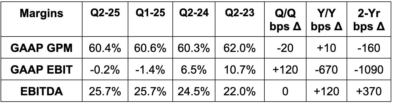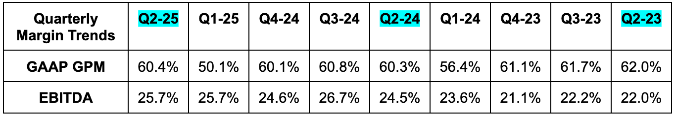- EBITDA margin expanded, which compares favorably to flat-to-down Y/Y EBITDA margin guidance.