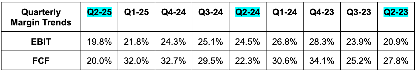 - Beat EBIT estimates by 7.7% & beat EBIT guidance by 9.3%.